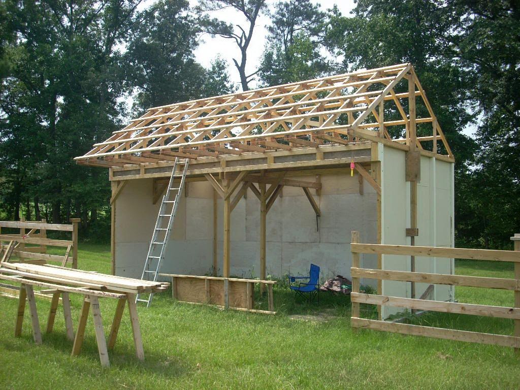Setting the poles is by far one of the most important steps of building a sturdy DIY pole barn. Take your time during this step to execute precise measurements, and keep your level handy to ensure that the poles are set upright. Also, the poles should be anchored at an appropriate depth after a narrow hole is dug. Digging anchor holes may be tedious, but taking a shortcut on this step can lead to disaster down the line.