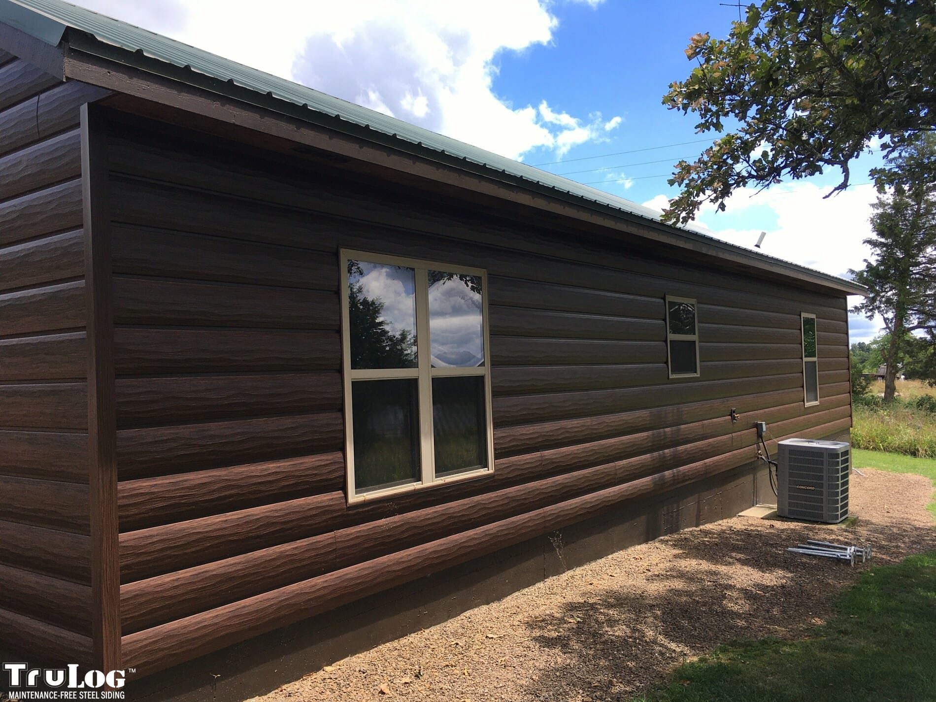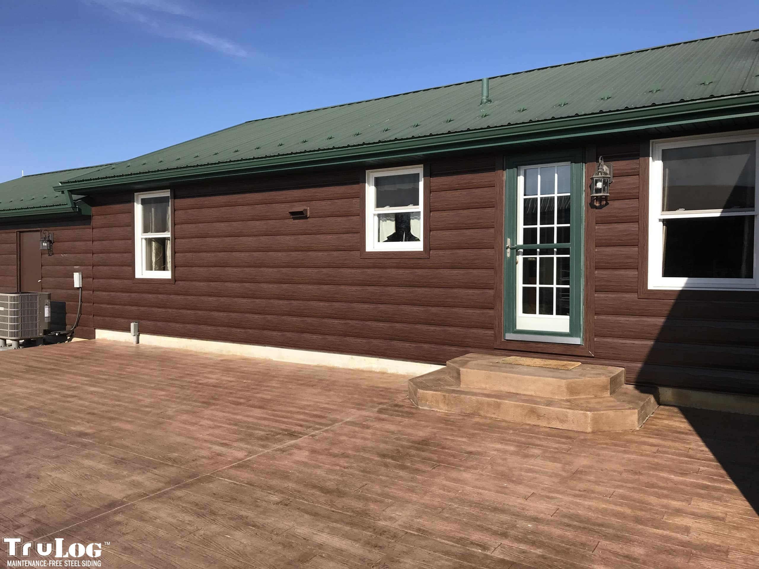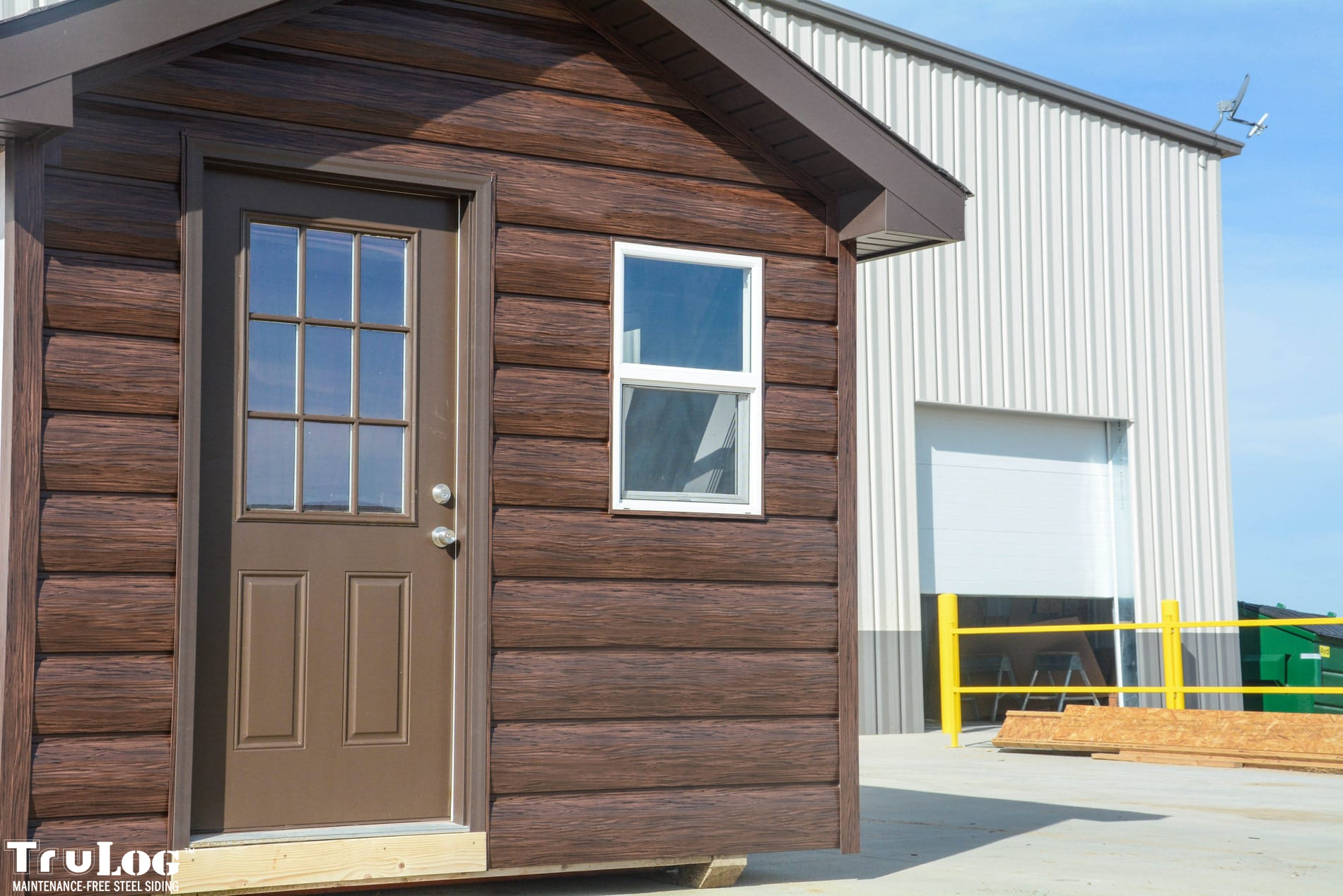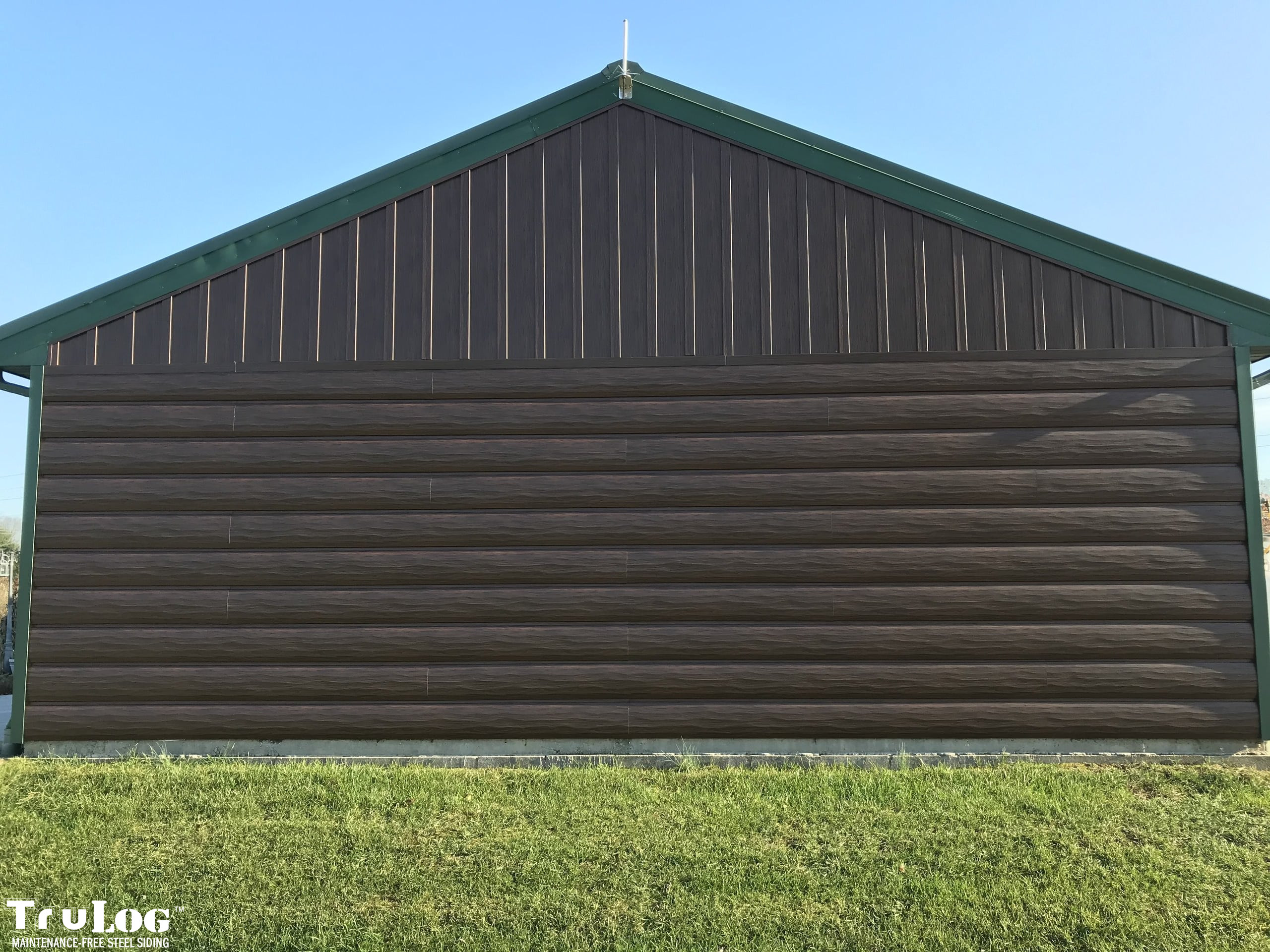 TruLog siding is made from high-quality, heavy-gauge steel with a durable, baked-on finish. It’s designed to look like real wood logs or wood grain siding while providing superior strength, weather resistance, and zero maintenance.