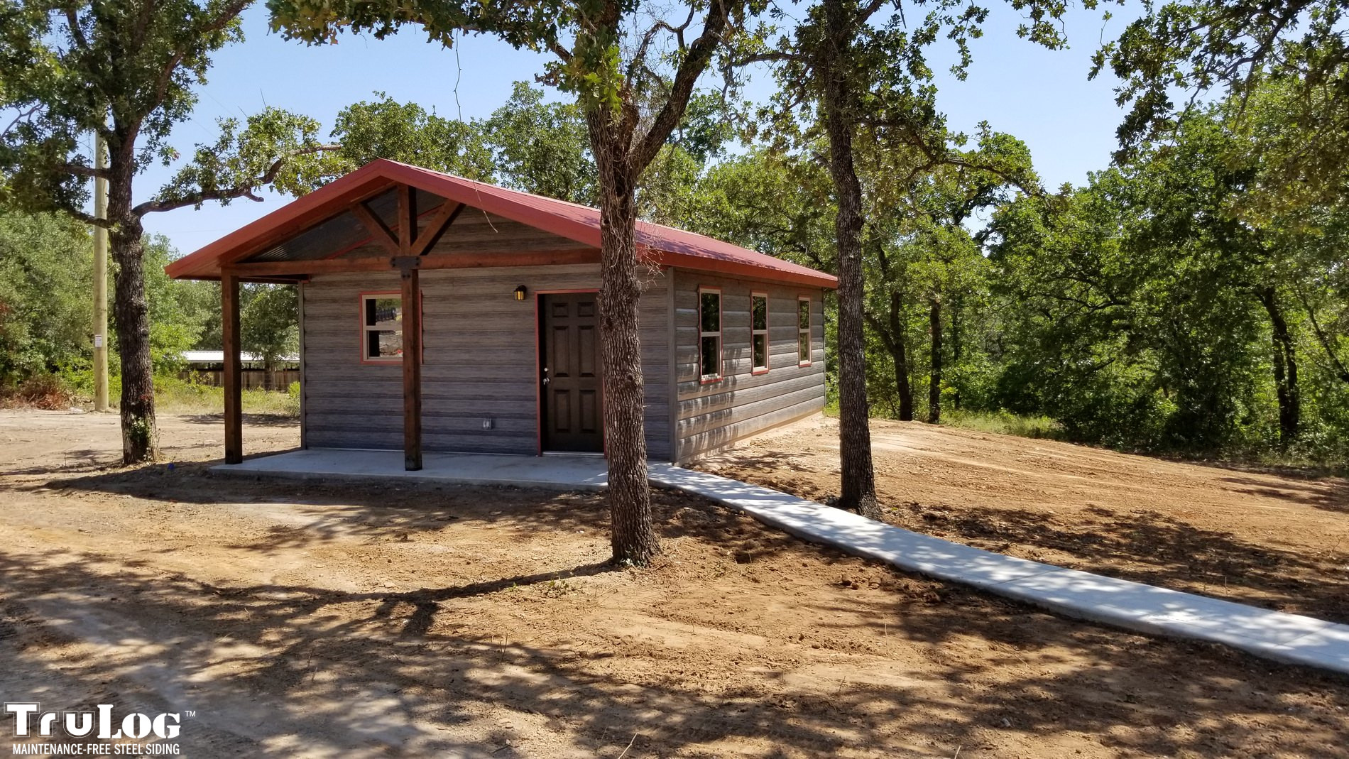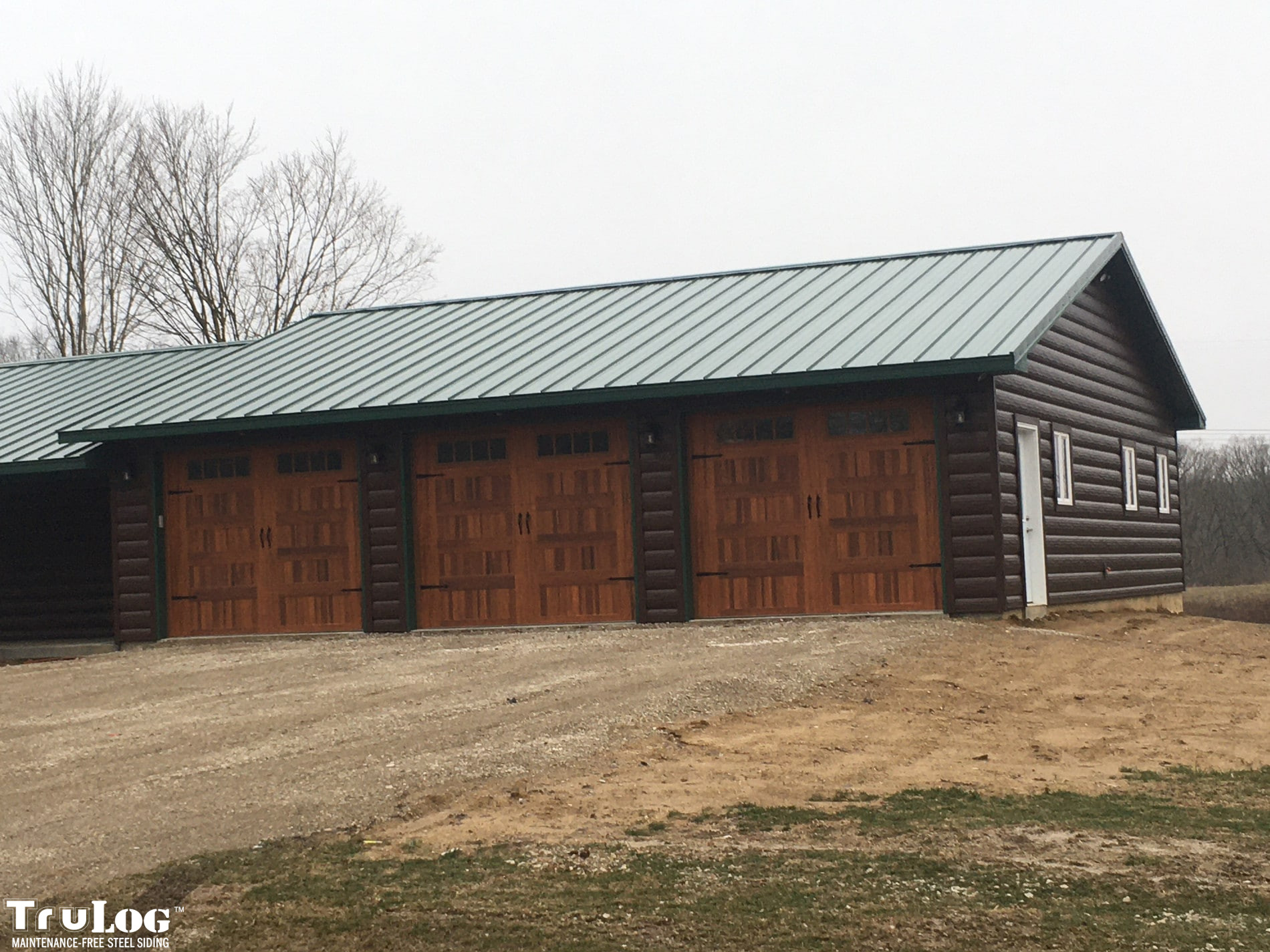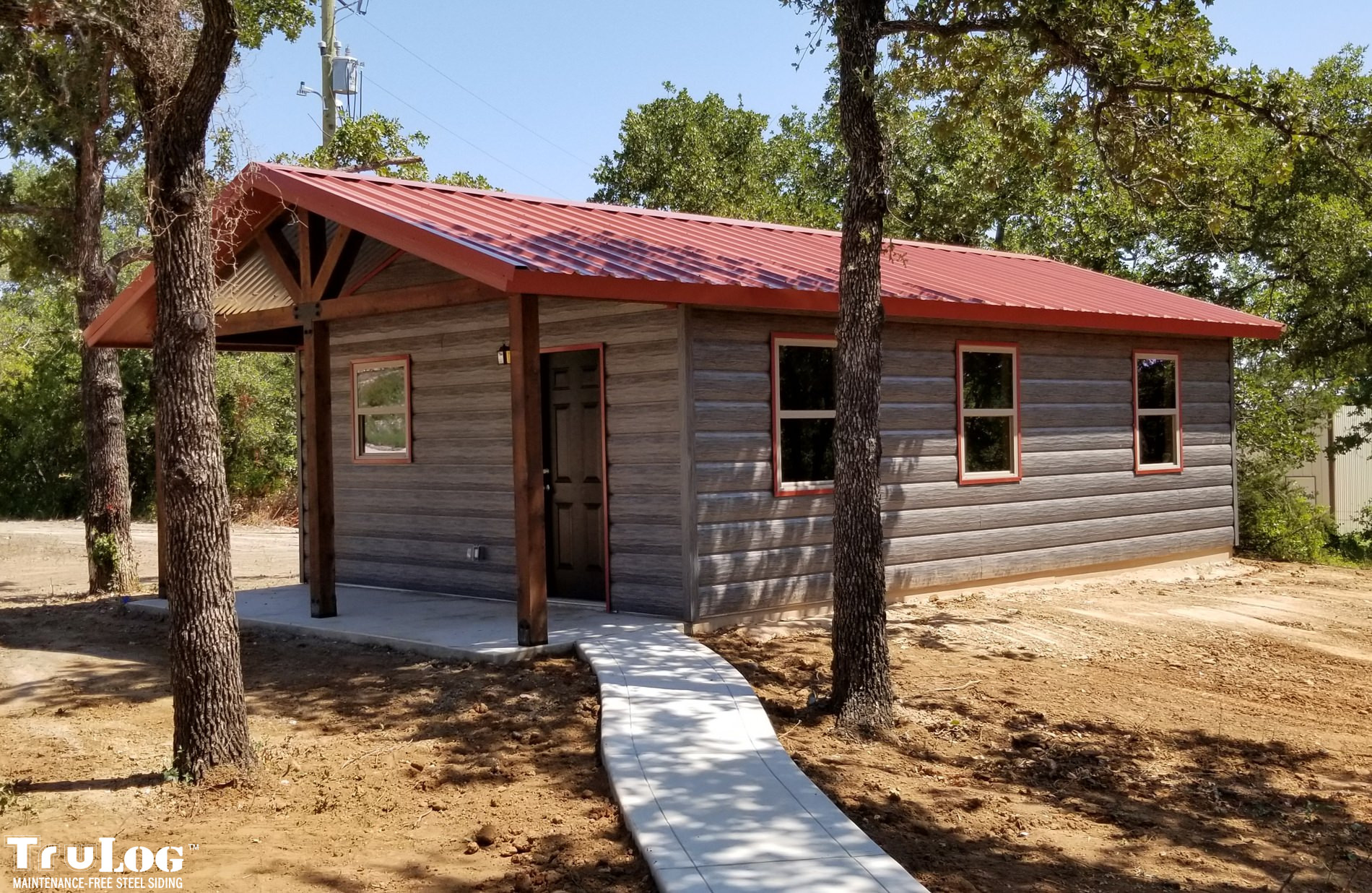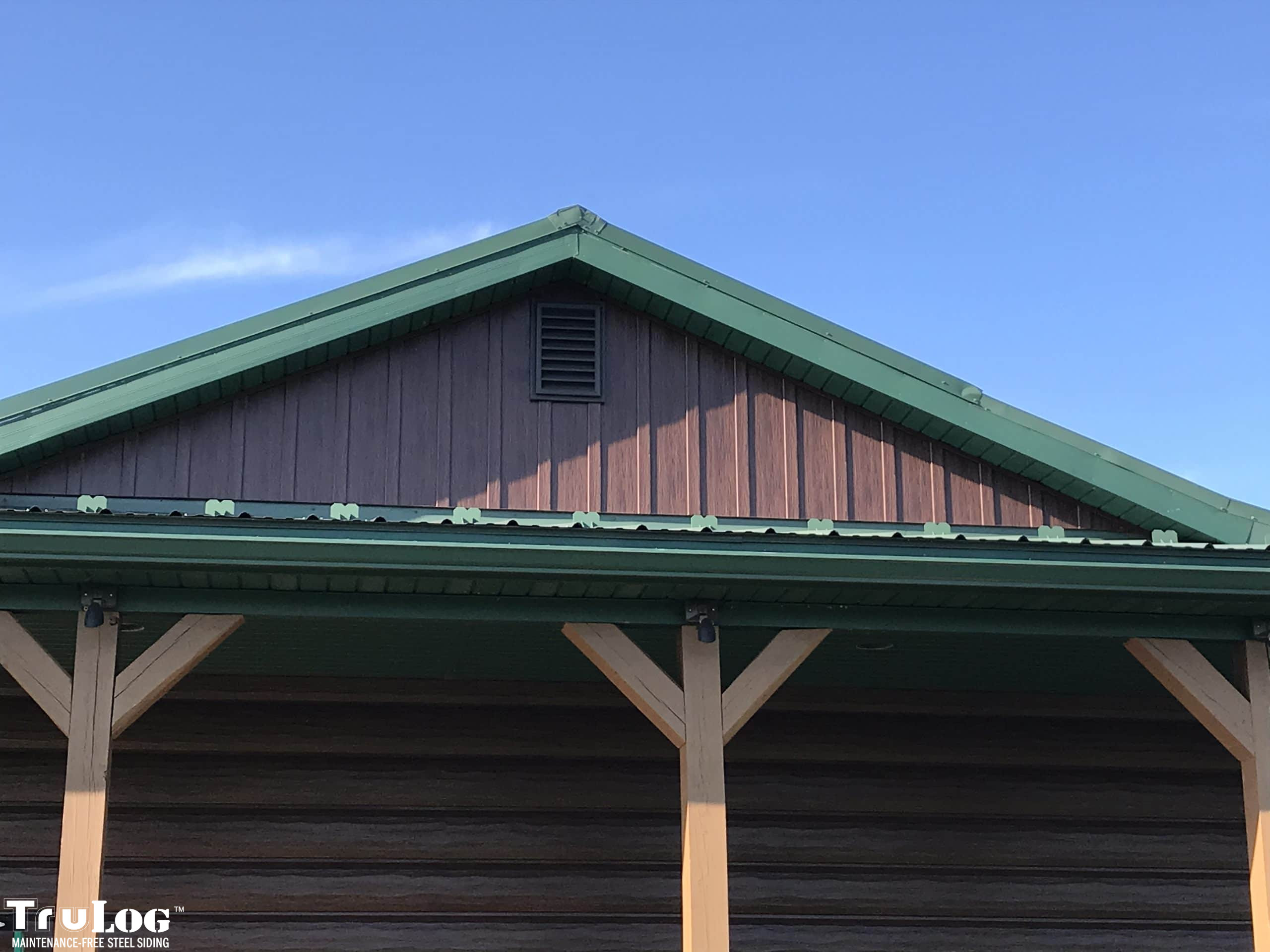 TruLog siding is made from high-quality, heavy-gauge steel with a durable, baked-on finish. It’s designed to look like real wood logs or wood grain siding while providing superior strength, weather resistance, and zero maintenance.