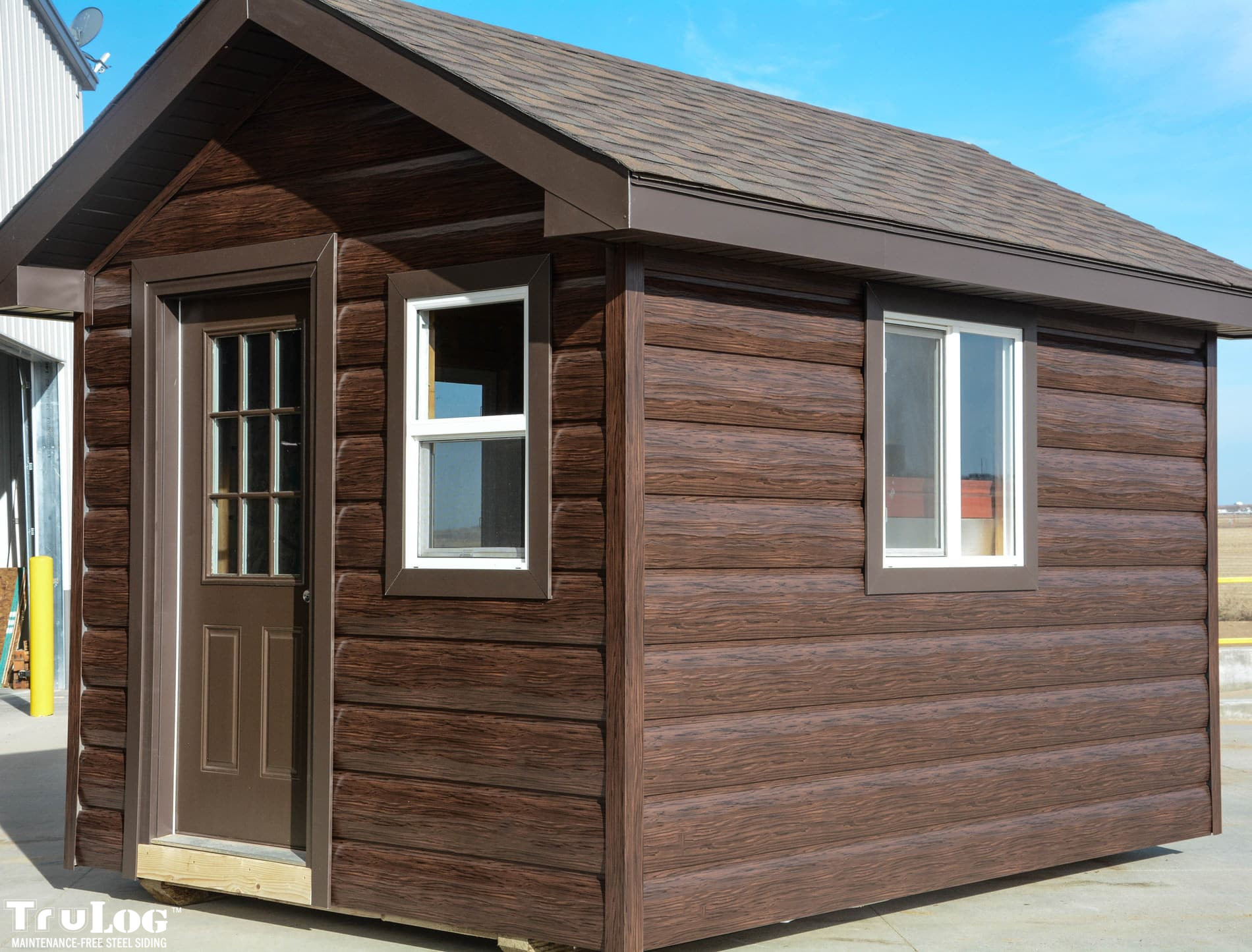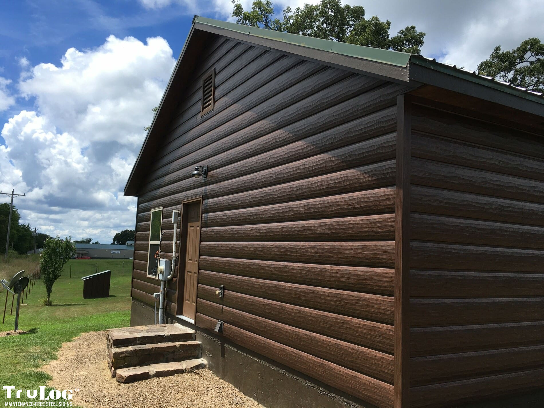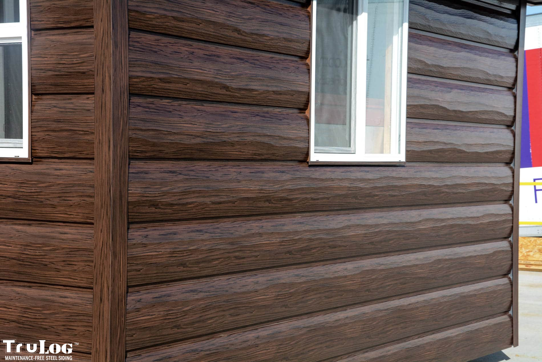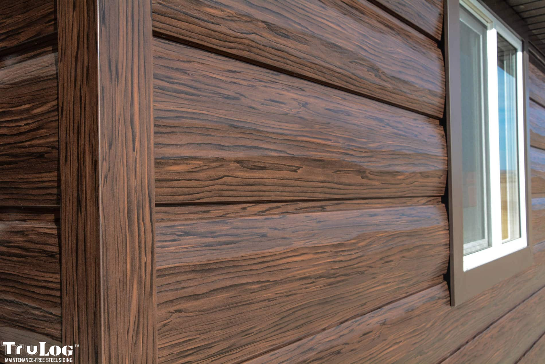 TruLog offers a variety of profiles, including log siding, lap siding, and board and batten steel siding. Popular colors include Cedar, Dark Walnut, Autumn Brown, and Weathered Gray, among others.